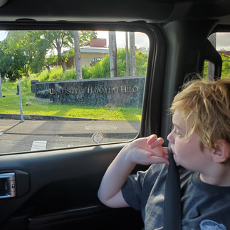 Stayed only a short while. I didn't feel great at that height so Mom helped me while we got out to see snow in Hawai'i and the many famous sites. We did not drive all the way to the official summit because that is sacred land to the Hawaiian people and we could see everything and be respectful, too. We saw protests about the big telescope they want to build directly on the summit.